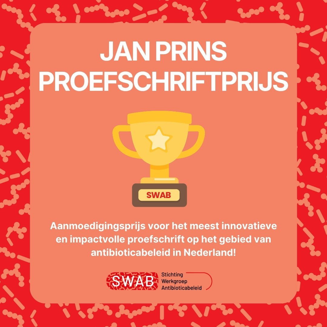Vanaf 2026 draagt deze prijs de naam Jan Prins Proefschriftprijs, ter ere van prof. dr. Jan Prins. Jan Prins is sinds 2001 op verschillende manieren betrokken bij de SWAB en heeft in die jaren veel betekend voor de stichting. Hij vervulde onder meer de rollen van secretaris en voorzitter en was betrokken bij de ontwikkeling van een groot aantal SWAB richtlijnen. Vanaf de start van het landelijke SWAB-ID in 2006 tot en met 2025 was hij actief betrokken bij het antibioticaboekje. Daarnaast leverde hij een belangrijke bijdrage aan het visiedocument over Antimicrobial Stewardship en aan de ontwikkeling van A-teams. Zijn werk heeft een blijvende impact gehad op het gebied van verantwoord antibioticagebruik. Deze aanmoedigingsprijs sluit inhoudelijk sterk aan bij zijn inzet voor het bevorderen van goed gebruik van antibiotica en zijn rol als begeleider van talloze promovendi.